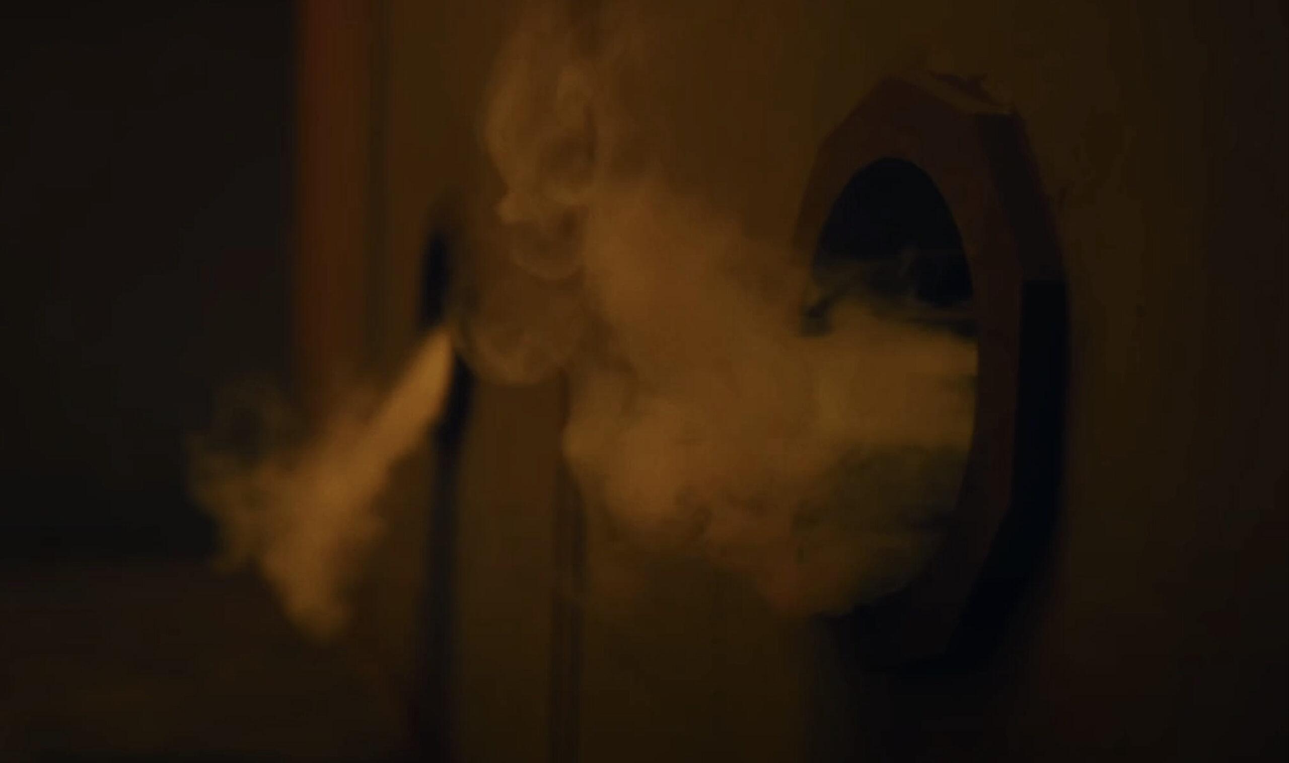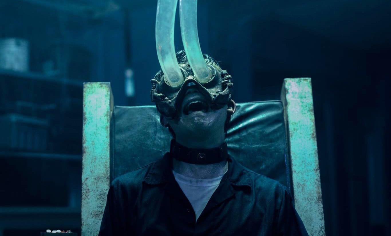 I’m probably saying this too much, but my god, what an idiot. You can’t be this dumb. Not in this league. If Addison takes 20 extra seconds to play the cassette tape and/or simply look around the room, she would see that there is a padlock on top of the box and a key behind it. I get that she’s pumped full of an unidentified poison that has others in the house disoriented and coughing up blood, but that can’t be the reason you willingly stuff your hands and wrists into a glass, razor-ridden box hanging in the middle of a room—let me check my notes—INSIDE A HAUNTED HOUSE FULL OF DEATH TRAPS.