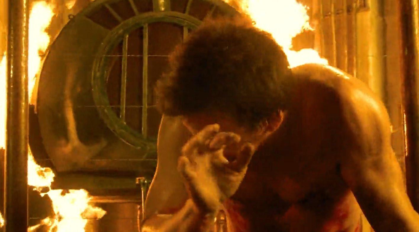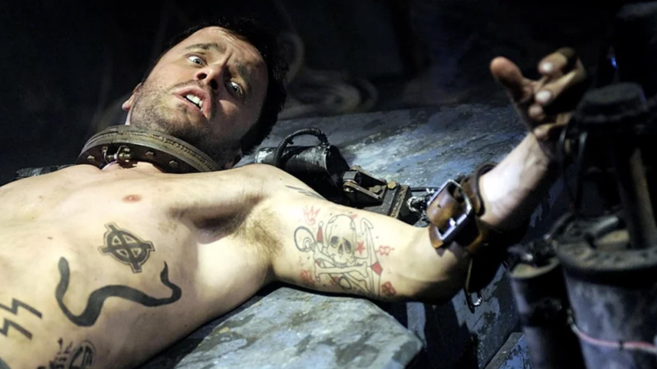 There are 11 thick metal hooks and hoops piercing Troy’s body when he wakes up. He has 90 (!!!) seconds to rip them all out of his body before a nail bomb explodes and kills him. Stop right there, and it’s a top-five trap on the list. It reaches top two because Troy gets 10 of the hooks and hoops out and dies with just the one in his jaw. We reward that kind of pain tolerance and grit within these (still very much made-up) rules. Troy is the only person in this universe that comes close to surviving.