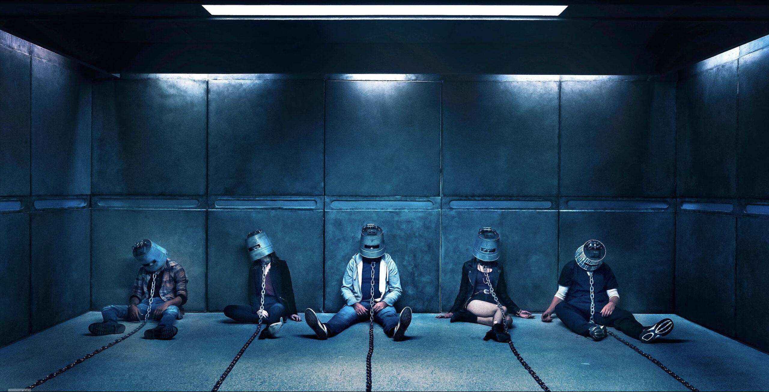 Two men wake up with their necks chained to a winch that will slowly choke and kill them if they don’t break free. The twist is one player has his eyes sewn shut and the other has his mouth sewn shut.