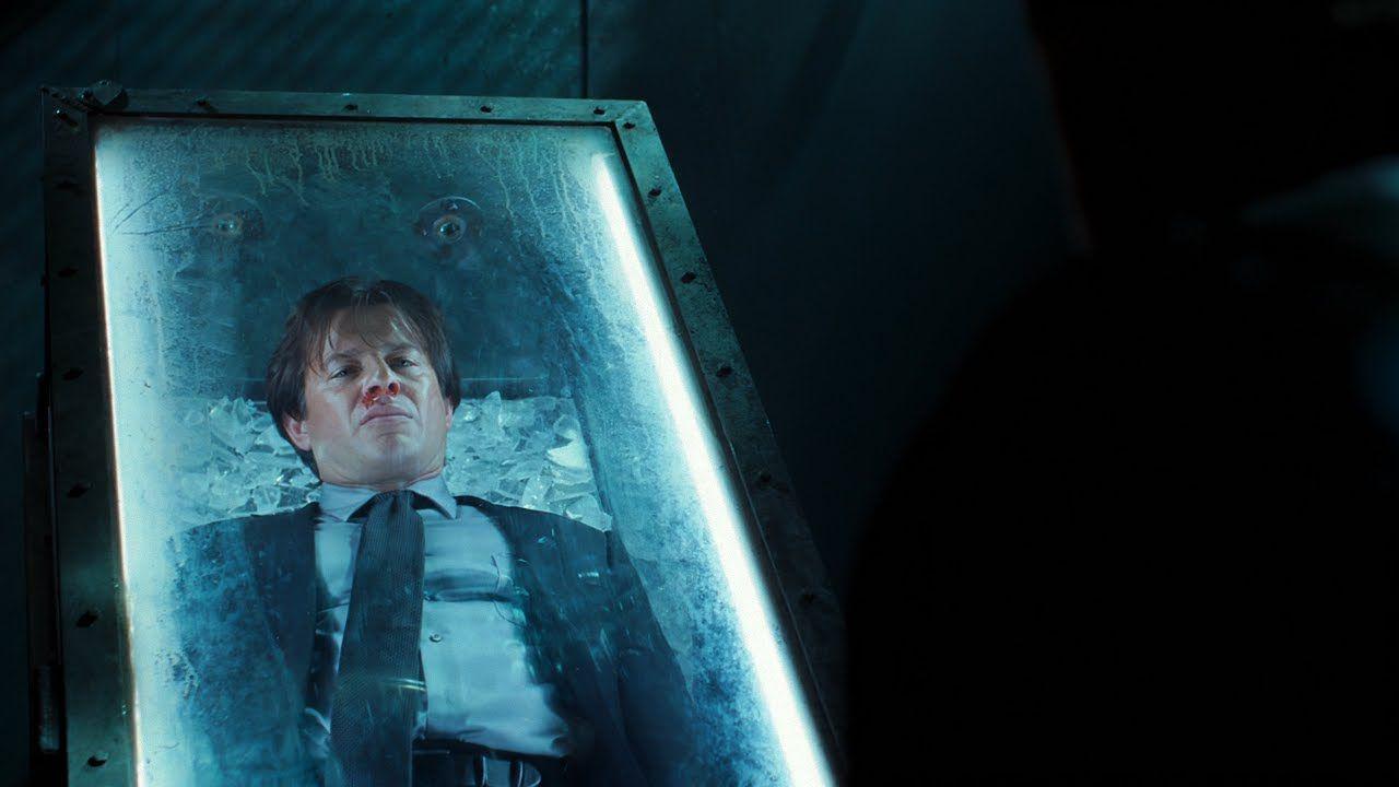 Detective Eric Matthews, played by Mark Wahlberg’s older brother Donnie, is standing on melting ice for 90 minutes. What he doesn’t know is that the ice beneath him doesn’t matter at all. There are two bigger ice blocks above him that will swing down and land on his head if (when) Rigg opens the door before the 90-minute timer goes off.