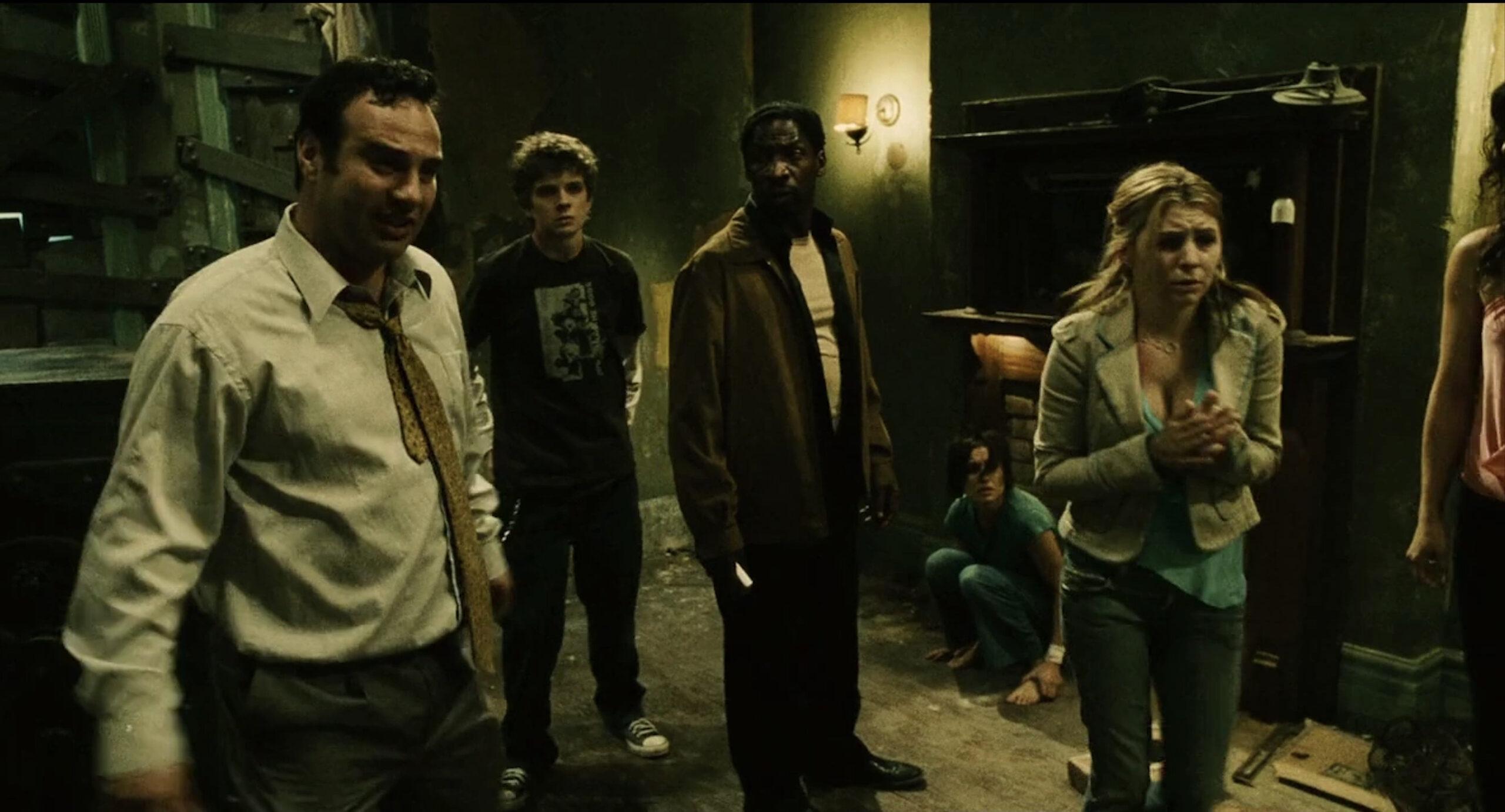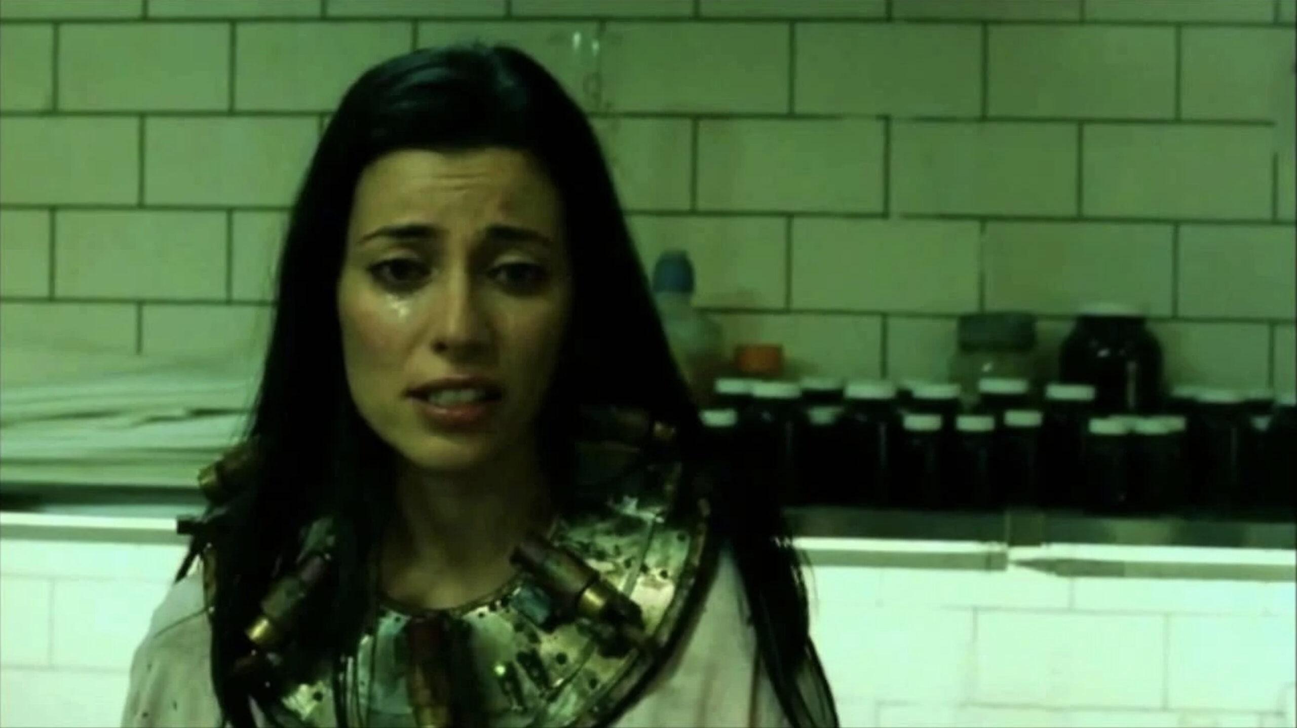 How many Jigsaw victims does it take to replace a lightbulb connect five electrical cords to a bathtub? In this case, it takes one dead and two alive. Luba, Mallick, and Brit could have thought as a group on how to connect the cords in order to open the locked door. But instead, Brit kills Luba and stabs all five cords into her body to create a closed circuit and escape.