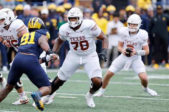 The Bears bolster their offensive line with this pick, nabbing a raw blocker with high upside. The Texas standout started for only one season, but he offers a rare combination of length, power, and movement skills at 6-foot-5 and 335 pounds. He’s got the foot quickness and length necessary to develop as a tackle but could start early in his career at guard, where he’d help boost the Bears’ run game before giving Caleb Williams better protection in year two.