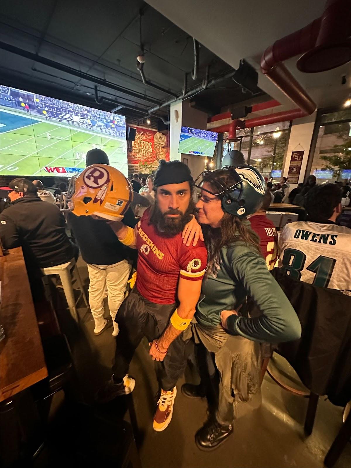 Dimitri and his wife, Julia, an Eagles fan from Philly, are foreign service officers. Wherever they’ve lived across the globe—from Iraq to Afghanistan to Pakistan to Liberia—Dimitri has made it a point to follow the Commanders, often watching games at 2 a.m. or 4 a.m. He estimates he listens to local Washington sports radio “100 percent of the time.” (Yes, even while he sleeps.) And while Julia was in labor with their firstborn son in Athens in November 2023, Dimitri insisted they stick a laptop in the corner of the delivery room so they could watch the Commanders play the Cowboys on Thursday Night Football (Washington lost by 35 points). I asked Julia if she’d been mad at Dimitri for wanting the game on while she was giving birth. “No,” Julia said. “Because I know that is who I married.”